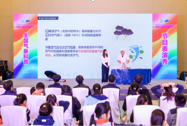 在展演中,《超低温液氮实验秀》以情景互动表演为主线,巧妙地运用液氮产生的超低温特性,通过其与热水相遇时瞬间产生的剧烈物理反应,将抽象复杂的气象原理转化为直观震撼的视觉奇观。现场演示了液氮与热水碰撞形成“爆沸”与浓厚“云雾”的现象,生动模拟了强对流天气中能量剧烈释放、水汽凝结成云的过程,使观众得以在室内清晰“看见”天气现象背后的部门科学原理。整场展演集科学性、趣味性与观赏性于一体,充分展现了厦门气象部门在科普创新与科学原理可视化方面的专业素养。未来,厦门气象部门将继续深化科普内容创新与形式拓展,让气象科学知识以更加生动、多元的方式飞入寻常百姓家,为提升公众科学素养、筑牢防灾减灾第一道防线贡献坚实的厦门力量。