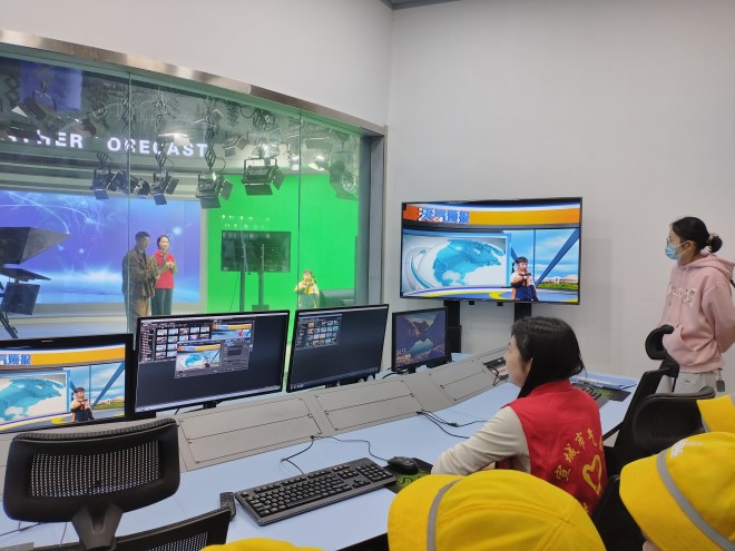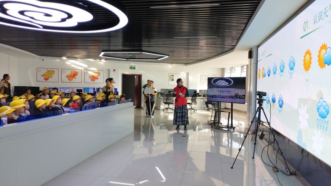 在讲解员的带领下,孩子们首先参观了户外气象观测场。百叶箱、雨量筒、风向风速仪……这些平日里只能在书本上看到的精密仪器,此刻真实地呈现在眼前。随后,孩子们走进了神秘的天气预报业务平台和气象演播厅,当看到巨大的卫星云图、雷达回波在屏幕上动态显示时,孩子们发出了阵阵惊叹。在演播厅体验环节,小朋友们争先恐后地走上绿幕背景前,化身“小小天气预报员”,有模有样地播报起天气,亲身体验了一次当“气象主播”的感觉,现场气氛欢快而热烈。