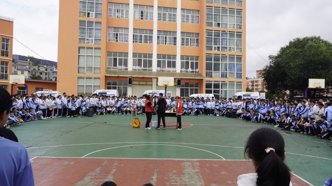 9月18日,曲靖市2025年全国科普月大篷车联合巡展活动驶进富源县第十三中学,为该校3800余名初中学生带来了一场别开生面的科普盛宴。本次活动由富源县气象局联合曲靖市科协、富源县科协、陆良县科协、会泽县科协、马龙区科协及富源县红十字会、马龙区气象局等单位共同开展,旨在针对初中生的认知特点和兴趣需求,开展由针对性的科普教育,激发青少年“学科学、爱科学、懂科学、用科学”的热情。