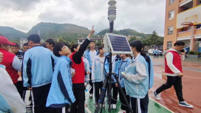 富源县气象局、马龙区气象局针对初中生地里课程内容,专门设置了气象科普专区。工作人员通过现场演示人工增雨作业模型、讲解卫星云图识别、展示气象观测设备等方式,将课本知识与实际应用相结合,帮助同学们更好地理解气候变化和防灾减灾知识。