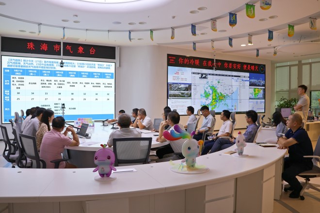 9月23日到24日,珠海市气象局主要负责人和业务骨干驻守市三防指挥部24小时不间断值守,为全市防御台风提供气象专业技术支撑;全局党员干部坚守岗位,夙夜未眠监测预警,用实际行动诠释“人民至上、生命至上”的理念。