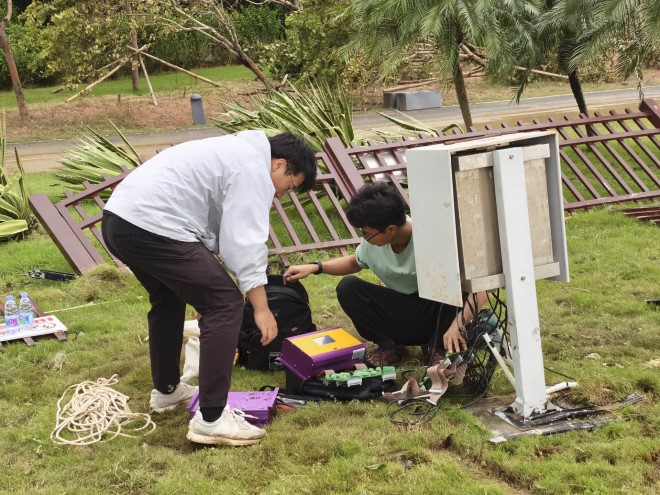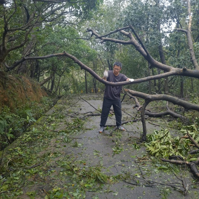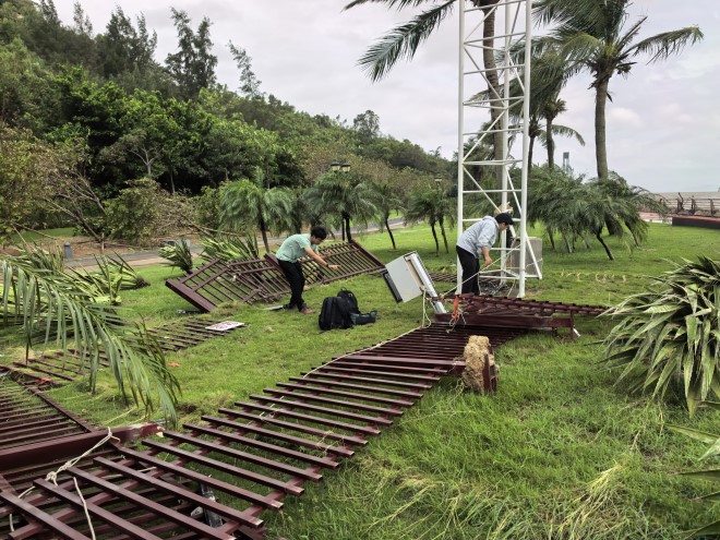 “桦加沙”远离后,通往金湾轿顶山雷达站的唯一道路被倒伏树木阻断。值守的2名党员顾不上连日守站的疲惫,轮流清理路障,为后续设备抢修打通通道。此次台风造成全市气象观测设备严重受损:23个自动站受损故障或数据中断、2个区级气象服务站市电断供、天气雷达站供电故障、山路树木倒伏受阻。气象局迅速组建党员抢修队,全力抢通设备、恢复数据,确保气象监测网络“生命线”不断,也为政府巨灾指数保险理赔等各项工作提供更加准确充分的气象数据支撑。