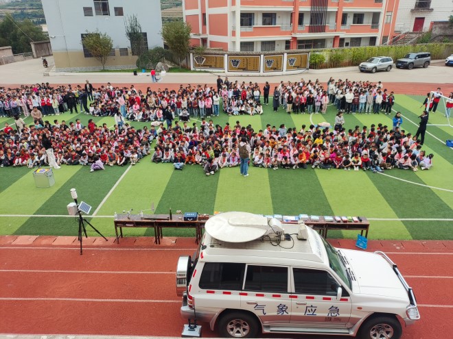 时值深秋,霜降甫至,寒意初显,然而富源县竹园镇第一小学的校园内却暖意融融,洋溢着求知的热情与探索的喜悦。10月23日,由富源县气象局、县科学技术协会、县红十字会三家单位联合精心策划组织的“科普进校园”活动在这里隆重举行。三家单位的主要领导亲自率队,为全校的近千名孩子们带来了一场集知识性、趣味性、互动性于一体的科普饕餮盛宴,让科学的种子在童心中生根发芽。