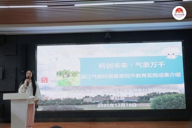 2025年12月18日,由四川省儿童活动中心主办的“四川少年团进校园活动暨校团协同育人专家论坛”在四川省旅游学校黄龙溪校区成功举行。成都市温江区气象局科普中心主任李红菲受邀出席,并作题为《如何把校外教育基地打造成全国顶流——以气象科普为例》的专题分享,系统介绍了温江气象科普基地在“气象+”融合发展、校外教育实践与乡村振兴服务方面的创新成果。