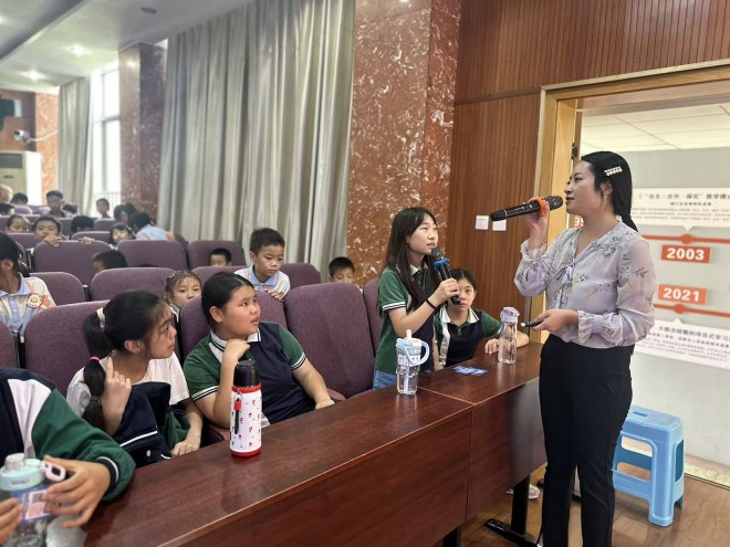 在交流互动阶段,学生们积极提问,围绕“云是怎么形成的”“天气预报如何制作”等感兴趣的话题与科普人员展开讨论。现场气氛活跃,在问答中不仅解决了学生的疑惑,也进一步激发了他们对气象学科的探索兴趣。