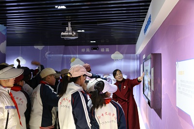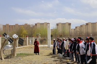 随后,学生们来到室外科普公园,公园内设置了二十四节气广场、古代气象谚语、浑天仪、简仪、相风鸟、雨量筒、日晷等古代气象探索仪器模型,以及近代的风云一号、风云四号等气象卫星模型的展示,折射了当下中国在气象领域的科技水平和探索精神。在这里我们可以近距离感观到大自然规律的二十四节气和古人对大自然的认识、变化规律和天气要素等符号标识,以及现代化气象仪器设备监测气象要素等。请大家边参观边感受,讲解员耐心讲解着,大家漫步其中,直观了解气象与生活、气象与生态环境的紧密联系,在轻松的氛围中进一步巩固所学科普知识,树立尊重自然、顺应自然、保护自然的生态理念。