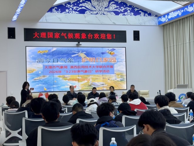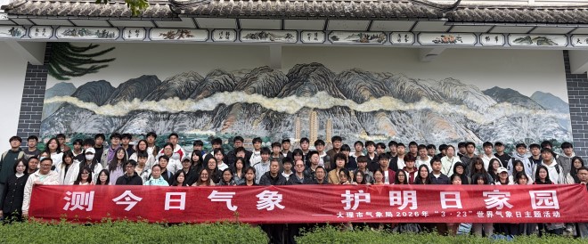 3月22日,在2026年“世界气象日”来临之际,大理市气象局与来自滇西应用技术大学的87名师生们围绕主题“测今日气象,护明日家园”,在大理市气象局全国科普教育基地联合开展“3.23世界气象日”思政研学实践活动。