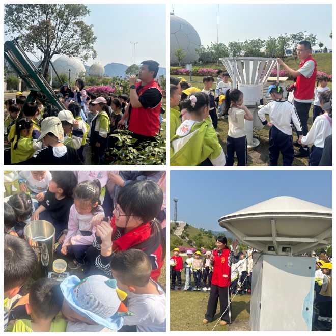 活动现场,气象工作人员带领师生有序参观气象观测场,逐一为大家详细讲解百叶箱、风向杆、雨量筒等专业气象观测设备的功能与工作原理。面对新奇的仪器,孩子们满是好奇,纷纷围在设备旁驻足观察,不断举手提出天真有趣的问题,工作人员则用通俗易懂、充满童趣的语言耐心逐一解答,同时结合罗源县本地气候特征,生动讲解了暴雨、雷电等常见灾害性天气的识别技巧,让孩子们在直观观察与互动提问中,真切感受气象观测工作的严谨与科学魅力。
