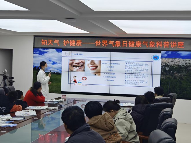 邢台市第九医院口腔科专家与气象工作人员创新科普视角,讲解气温、湿度、冷空气等气象要素对口腔黏膜、牙齿敏感、牙龈不适的影响,普及科学护齿与健康防护知识。现场开展互动问答,并向群众发放健康气象科普宣传材料,有效提升公众健康防护意识,推动气象科普与民生健康深度融合。