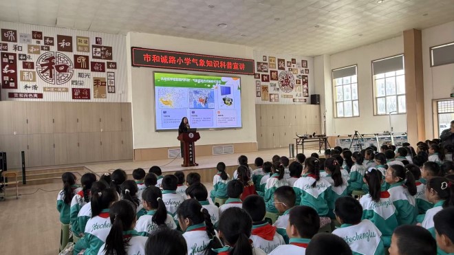 气象科普进校园活动。气象科普志愿者走进嘉峪关市和诚路小学,面向师生们开展内容丰富的气象科普宣讲和互动交流。