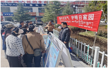 图为琼结县局在街头向过往群众讲解气象知识