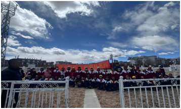 图为浪卡子县局带领学生参观后在观测场与学生合影留念