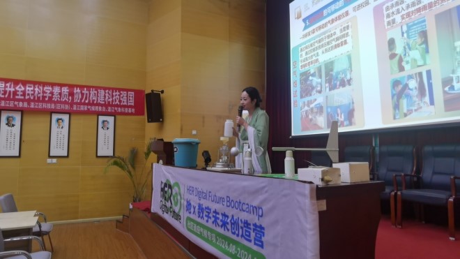 活动现场由温江气象科普基地负责人李红菲负责主要讲座内容,李老师为了让学生们切身感受到气象与我们生活的关联,带来了精彩的空气炮与翻斗式雨量的展示。由此极大地调动了学生们的探索欲望与兴趣,让参与者直观感受到了气象科学的魅力。通过台上台下的互动体验,学生们不仅学到了气象知识,还增强了对气象工作的认识和关注。